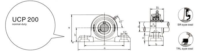 The UCP series ball bearings with seats are the most representative form of bearing components. The bearing seat P has a solid flat bottom. This series has two types: UCP200 and UCP300. The UCP300 series bears a larger load than the UCP200 series. Because the root of the bearing seat installation site is equipped with reinforcing ribs, it is a high-strength structure that conforms to all directions. In addition, the bearing seat P can also be used with UK, UEL, NA series bearing components, and UK component taper holes (UKP), with the nominal model of the fitting sleeve attached after the component engineering model. The main uses of this series include transmission devices, fitness equipment, harvesters, etc.